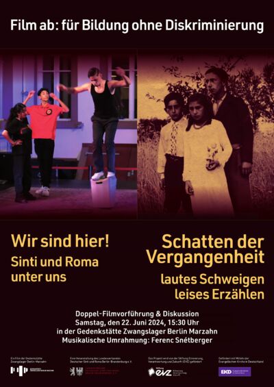 Unser Programm umfasst die Vorführung der beiden Filme „Schatten der Vergangenheit – lautes Schweigen, leises Erzählen“ (2023) der Gedenkstätte Zwangslager Berlin-Marzahn und „Wir sind hier! Sinti und Roma unter uns“ (2024) von Silke Stürmer, der Beauftragten für die Zusammenarbeit mit Sinti und Roma der Evangelischen Landeskirche in Württemberg. Im Anschluss haben wir die Gelegenheit, über das Gesehene und sich daraus ergebende Perspektiven auf die Bildungsarbeit zu diskutieren und ins Gespräch zu kommen.